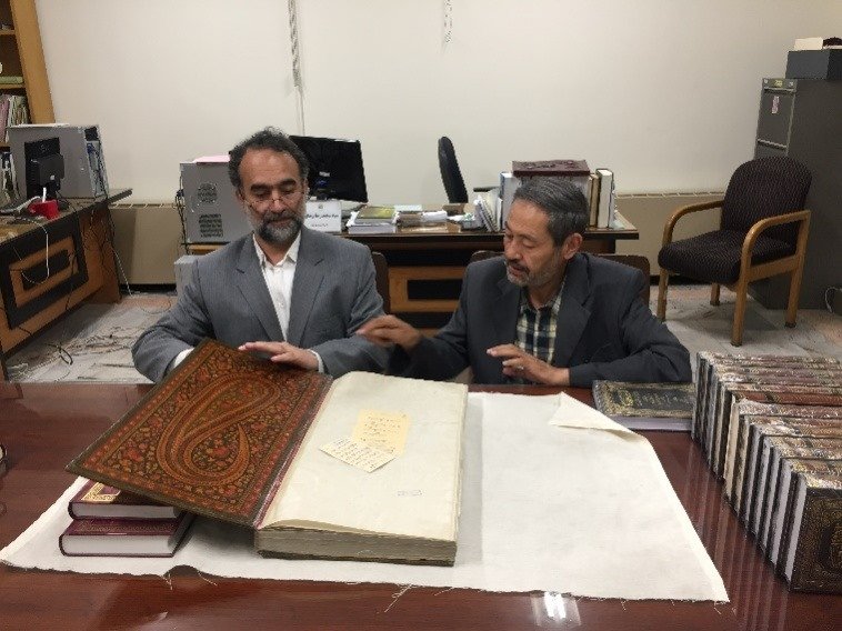 Description showing donated by Amir Abdur Rahman Khan through the Governor of Herat, Sa’ad-ud-Din Khan, to the Holly Shrine of Imam Raza at Mashhad, Iran in 1894.